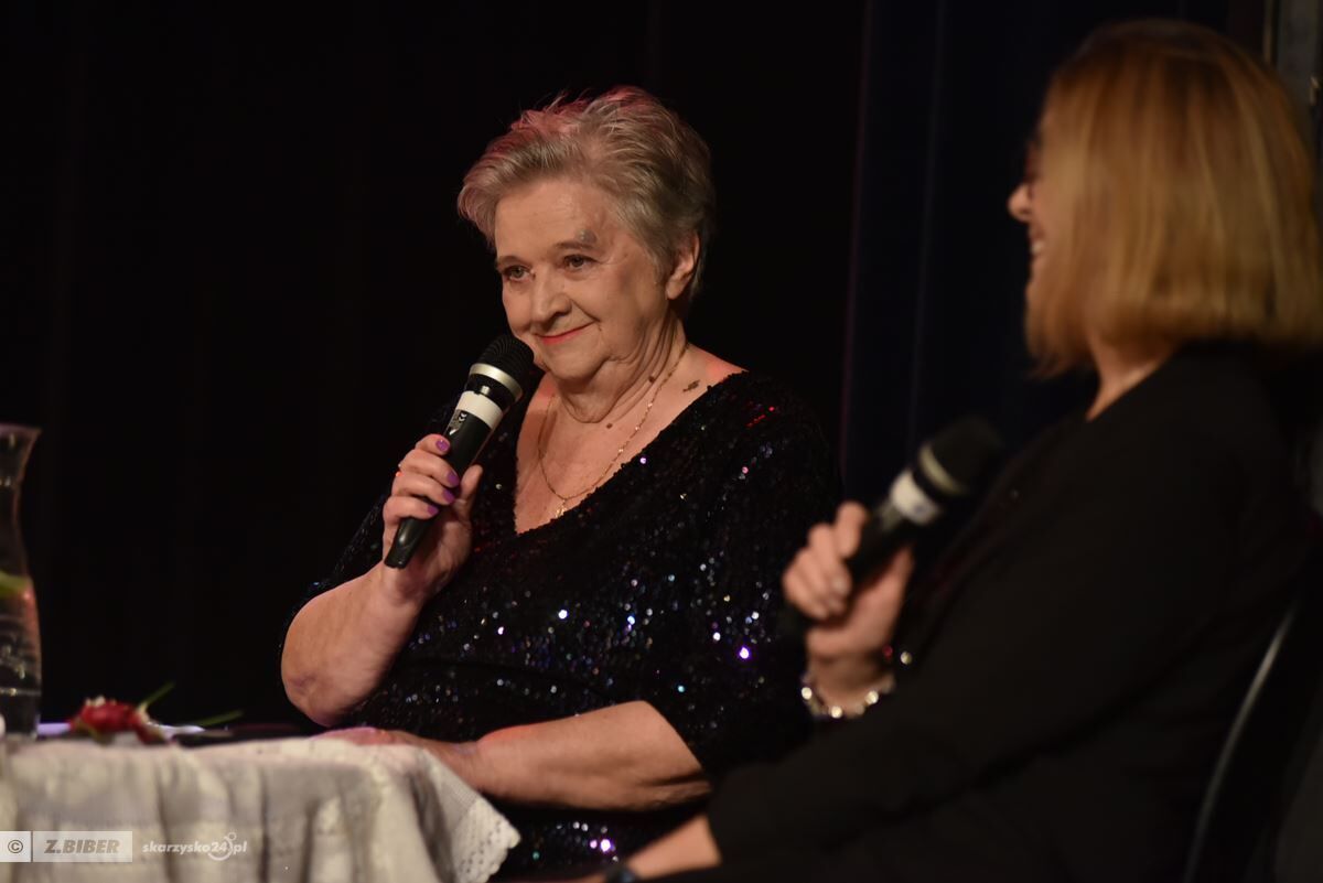 Nie zabrakło też momentu pełnego wzruszeń – na scenie pojawili się goście z życzeniami dla jubilatki. Gratulacje i serdeczne słowa skierowali do niej: Dyrektor Miejskiego Centrum Kultury Agnieszka Włodarczyk-Mazurek, wicestarosta Katarzyna Bilska, zastępca prezydenta miasta Konrad Wikariusz, przedstawiciele Skarżyskiego Uniwersytetu Trzeciego Wieku, zespołów Perły z Lamusa, Fantazja, Klubu Seniora z Kamiennej. Grupy Literackiej "Wiklina" Katarzyna Skarus, była dyrektorka GOK w Bliżynie oraz najbliższa rodzina.