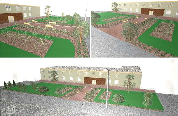 Pierwszym celem było uporządkowanie terenu objętego projektem. Niezbędne będzie przeprowadzenie renowacji trawnika. Drugim celem było wyznaczenie terenu pod nasadzenia z krzewów o ciekawej kolorystyce, które przyczynią się do poprawy estetyki projektowanego terenu i nadadzą mu charakter niewielkiego skweru.