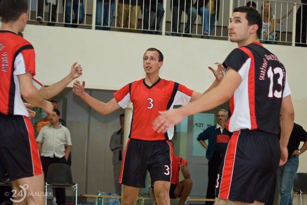 Po pierwszym spotkaniu przegranym przez naszych siatkarzy w drugim dniu nikt nie dopuszczał możliwości, że z Politechniką STS może przegrać. Nasi siatkarze zaczęli spotkanie bardzo dobrze wygrywając pierwszego seta. W drugim nie było już tak łatwo i musieliśmy uznać wyższość AZS-u. Kolejne sety to przewaga STS-u. Doświadczony gracz Albert Semeniuk, który został zresztą wybrany najlepszym zawodnikiem meczu podpowiadał młodszym kolegom jak należy to spotkanie wygrać i tak też się stało. STS pokonał drużynę AZS Politechnika 3:1 i zapewnił sobie start w drugiej lidze.