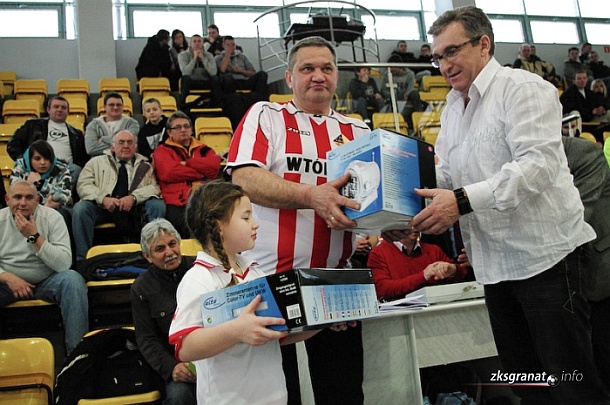 Nowa drużyna Granatu pod wodzą trenera Ireneusza Pietrzykowskiego zaprezentowała się bardzo dobrze. Szczególnie ci, którzy na wiosnę mają stanowić o sile zespołu, dzisiaj występujący pod szyldem Granat I. Nasz bramkarz Konrad Majcherczyk przez pierwsze 32 minuty turnieju nie puścił żadnej bramki, popisując się kilkoma wręcz niesamowitymi interwencjami, Dopiero mając już zapewniony awans do półfinału nasza drużyna niepotrzebnie się rozluźniła i przegrała w ostatnim meczu grupowym wyraźnie z Juventą II.