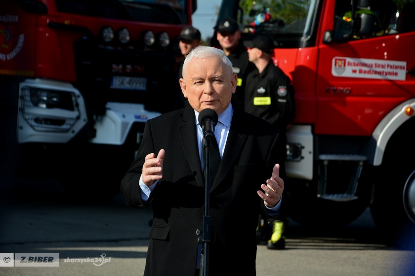 Podczas spotkania Jarosław Kaczyński dziękował strażakom za ich służbę, wpisał się też do księgi pamiątkowej.