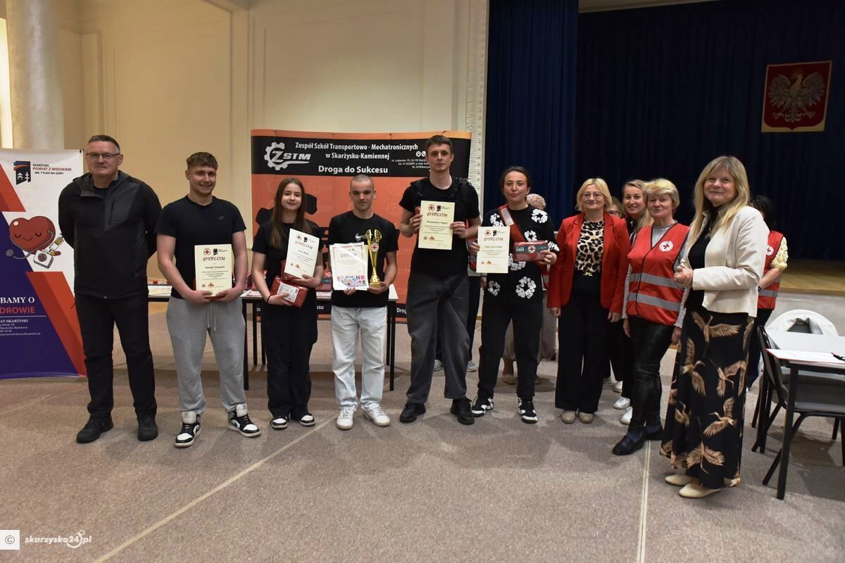 W dniu 21 kwietnia 2026r. w Zespole Szkół Transportowo-Mechatronicznych w Skarżysku-Kamiennej przeprowadzono XXXII Rejonowe Mistrzostwa Pierwszej Pomocy PCK. Udział w nich wzięło – 5 zespołów medycznych szkół ponadpodstawowych: I LO, II LO, ZST, ZSS-U oraz ZST-M. Każdy zespół medyczny liczył 5 ratowników.