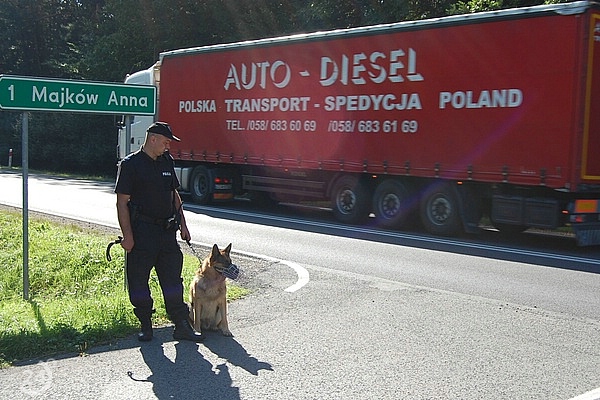 Dyżurny kieruje tam patrol operacyjny, przebywający najbliżej miejsca zdarzenia. Patrol operacyjny nawiązuje kontakt wzrokowy z podejrzanym samochodem. Dyżurny poleca funkcjonariuszom operacyjnym tylko obserwację podejrzanego samochodu i śledzenie go. Podejrzani jadą w kierunku Majkowa, następnie ulicą Dębową w kierunku Młodzaw.