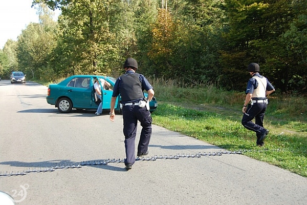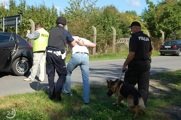 Po krótkim pościgu sprawcy uciekający w kierunku Majkowa zostają zatrzymani na zorganizowanej w Młodzawach blokadzie .
