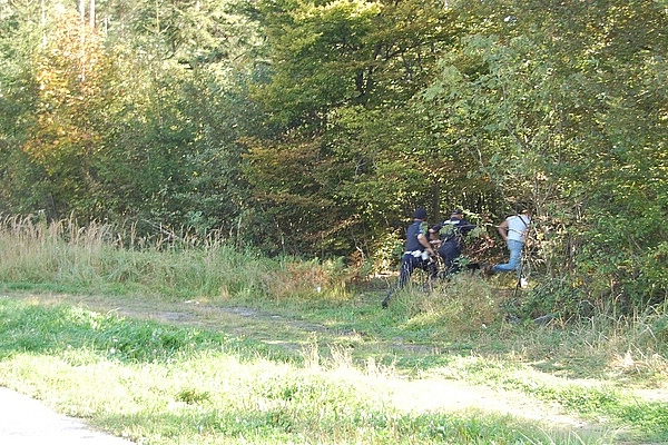 W tym czasie dyżurny otrzymuje telefon z informacją, że w lesie niedaleko miejscowości Szczepanów ktoś zaobserwował jak na bocznej drodze 3 zamaskowanych mężczyzn stojąc obok 2 samochodów przebiera się. Informator przekazuje wiadomość, że mężczyźni przenieśli jakieś skrzynki do drugiego samochodu, podpalając pierwszy.