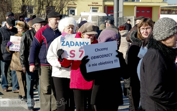 Dzisiaj odbyła się kolejna akcja protestacyjna przeciwko anulowaniu przez Ministerstwo Infrastruktury przetargu na budowę odcinka S7 Skarżysko-Kamienna - granica województwa. Po raz kolejny protestujący zablokowali ruch na S7 na wysokości remizy OSP na osiedlu Książęce.