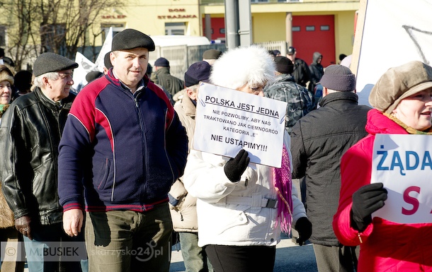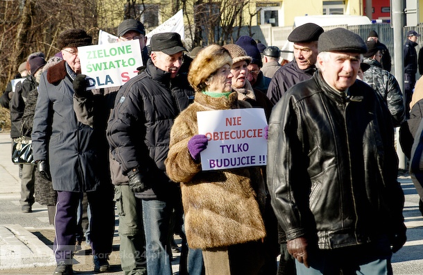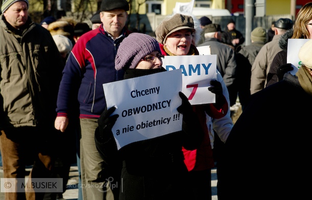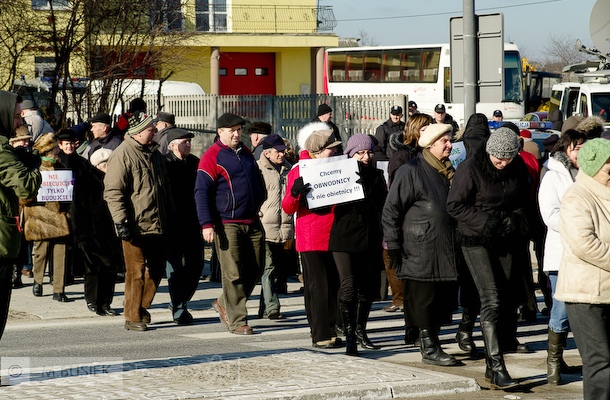 Przed godziną 11.00 na przejście dla pieszych u zbiegu ulic Warszawskiej i Rycerskiej wyszło ok. 40 protestujących - czyi znacznie mniej niż podczas pierwszego protestu. Zabrakło (przynajmniej na począku protestu) naszych samorządowców i parlamentarzystów.