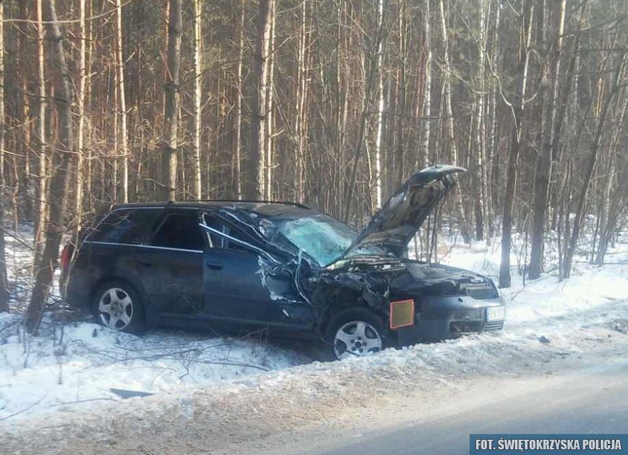 Do zdarzenia doszło w niedzielę około godziny 10 w miejscowości Majków. Jak wynika ze wstępnych ustaleń, kierujący pojazdem marki Audi A6 prawdopodobnie w wyniku niedostosowania prędkości do warunków panujących na drodze, stracił panowanie nad autem i uderzył w drzewo. Kierowca pojazdu był nietrzeźwy. Badanie alkomatem wykazało ponad promil alkoholu w jego organizmie. W wyniku zdarzenia obrażeń ciała doznał pasażer samochodu, który także był pijany. Mężczyzna ze złamaniem ręki trafił do szpitala.