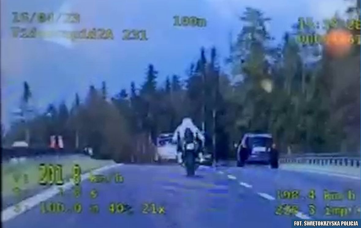 W niedzielne popołudnie mundurowi ze skarżyskiej drogówki zatrzymali do kontroli drogowej motocykl marki Kawasaki. Siedzący za kierownicą 50-letni mieszkaniec Starachowic przekroczył dopuszczalną prędkość o 80 km/h. Jechał krajową „siódemką” 200 km/h. Zgodnie z taryfikatorem policjanci nałożyli na pirata drogowego mandat w wysokości 2500 złotych oraz „dopisali” do jego profilu kierowcy 15 punktów karnych.